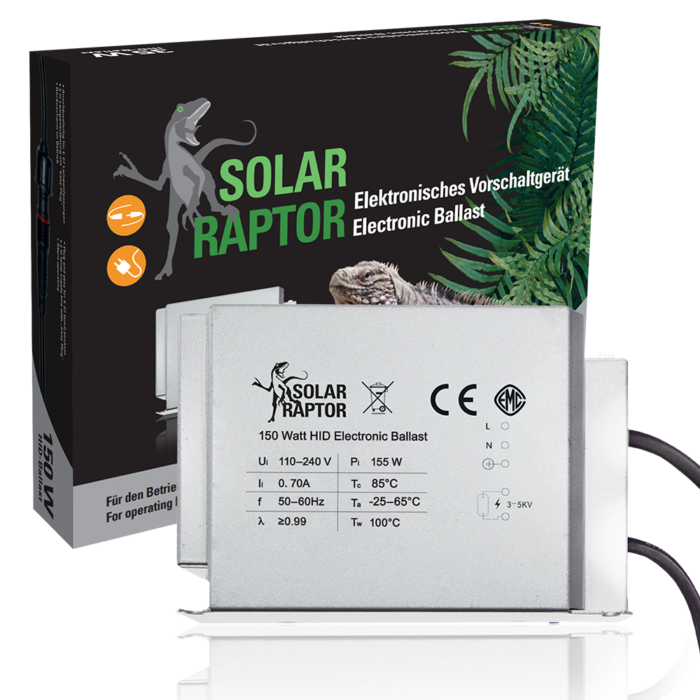 Viele Terrarienstrahler, wie die HID-Lamps, benötigen für ihren Betrieb ein elektronisches Vorschaltgerät. Das EVG ist komplett anschlussfertig und mit den beliebten SOLAR RAPTOR®-Verbindungssteckern versehen. Mit diesen Steckern kann es schnell und einfach mit den SOLAR RAPTOR® ClampLamps kombiniert werden. Außerdem kann es an jede übliche Terrarienfassung angeschlossen werden.